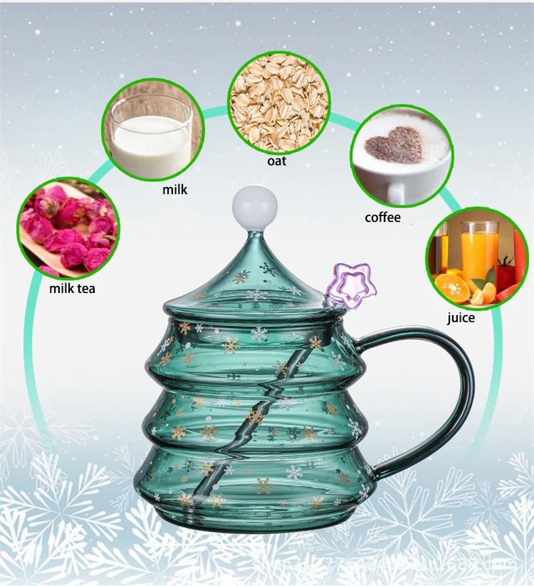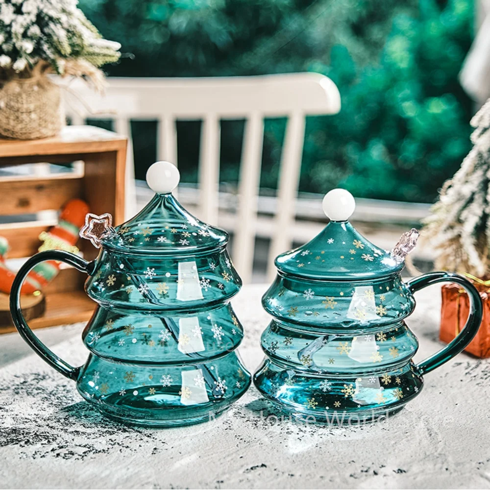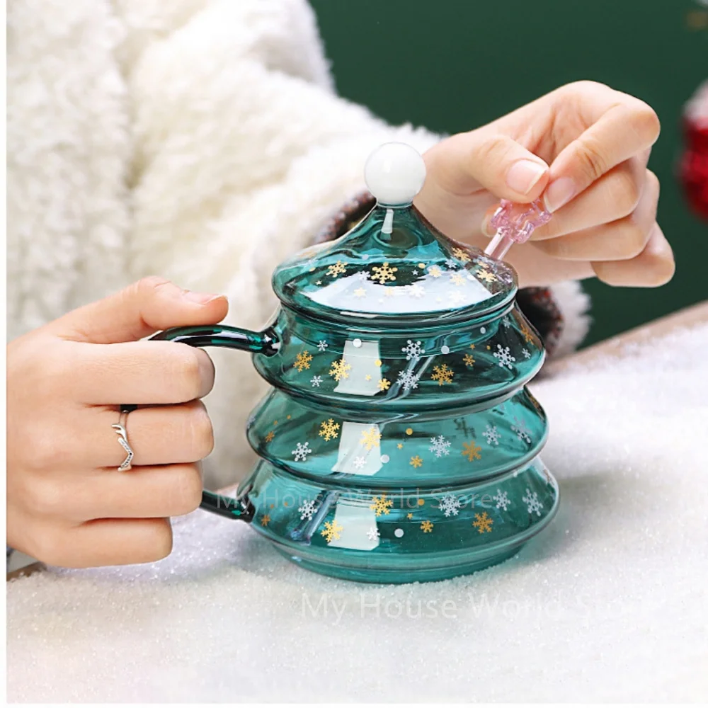 Christmas Tree Mug Snow Mountain Glass cup Heat Cold Resistance Glass Coffee Cup Cartoon Christmas Gift New Milk Juice Cup
